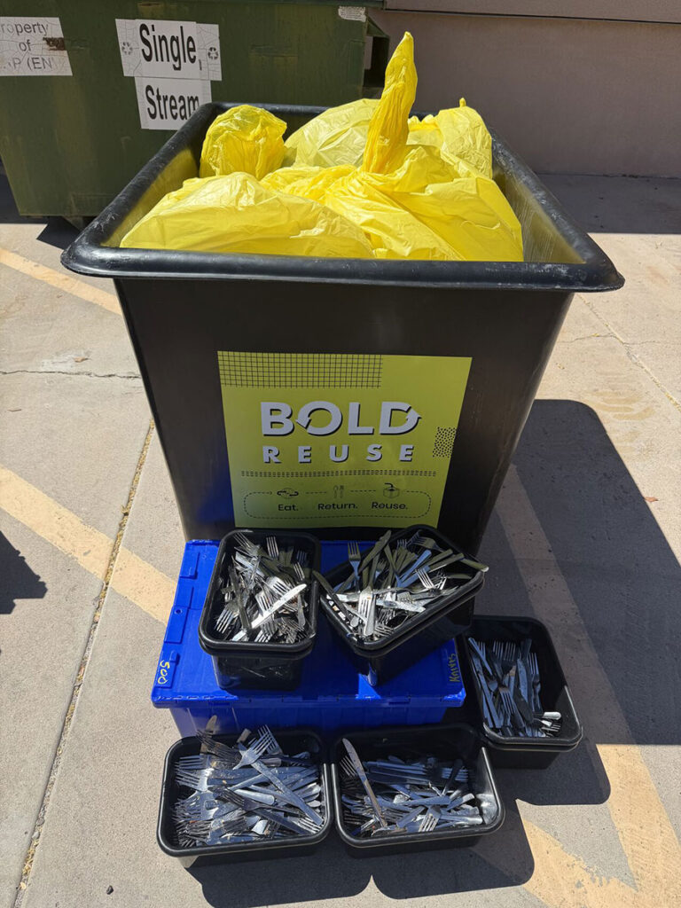The impact was immediate. There were 2,357 single-use waste items – 148 pounds of waste — diverted from the landfill. This included 402 cups, 488 plates and 1467 utensils. Not to mention reduced disposal and hauling needs.
